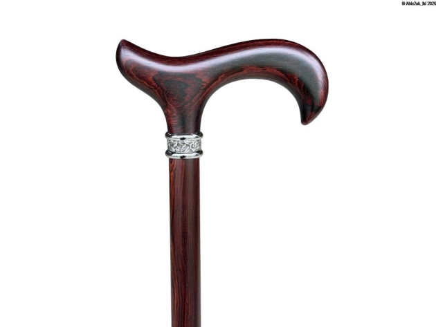 A superb cane made from exotic kingswood, finished with a derby handle and a rose pewter collar. Fitted with a rubber ferrule.