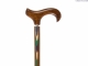 A cane made from tropical West African ovangkol wood, decorated with a coloured inlay finished with a derby handle and a silver colour collar. Fitted with a rubber ferrule.